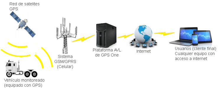 Ahora, teniendo estas definiciones que son las principales y mas importantes en el uso de los dispositivos AVL/GPS/GPRS detallaremos cómo funcionan el sistema completo.